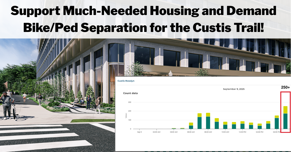 This section of the Custis sees the highest volumes (more than 250/hr on commute days with nice weather), so the 12' MINIMUM width recommended by the Custis Needs Report is insufficient in this location. We need to be building for future volumes, not today's volumes. This portion of the Custis should separate bikes from pedestrians - a 10' section for two-way bike traffic and a 6' wide section for two-way pedestrians, similar to the dual-trail cross-section of the W&OD in Falls Church.