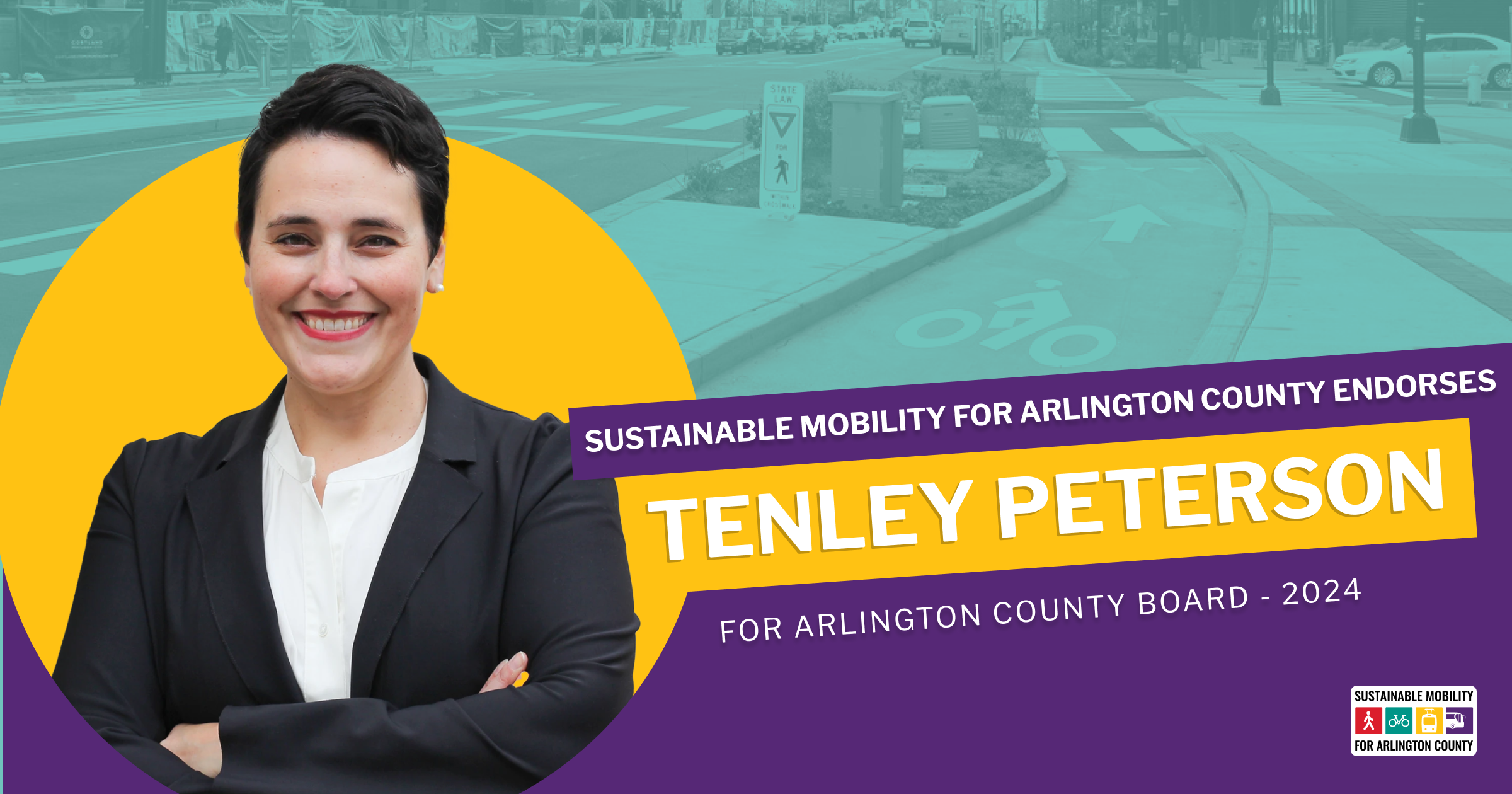 Sustainable Mobility for Arlington County is endorsing Tenley Peterson for your first ranked vote in the June 18, 2024 election for the Democratic nomination for Arlington County Board.