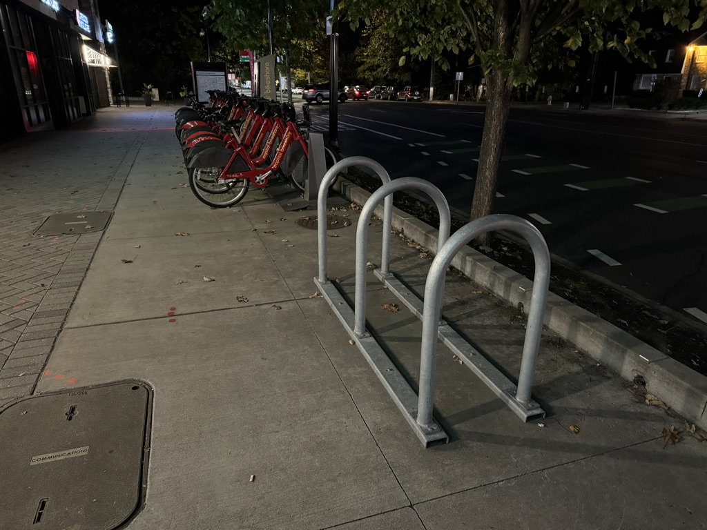 Nearby bike racks have 2 points of contact for each bike & enough clearance to be easily usable (no wave racks, no wheelbender racks, no racks jammed right up against a building) (1 point)