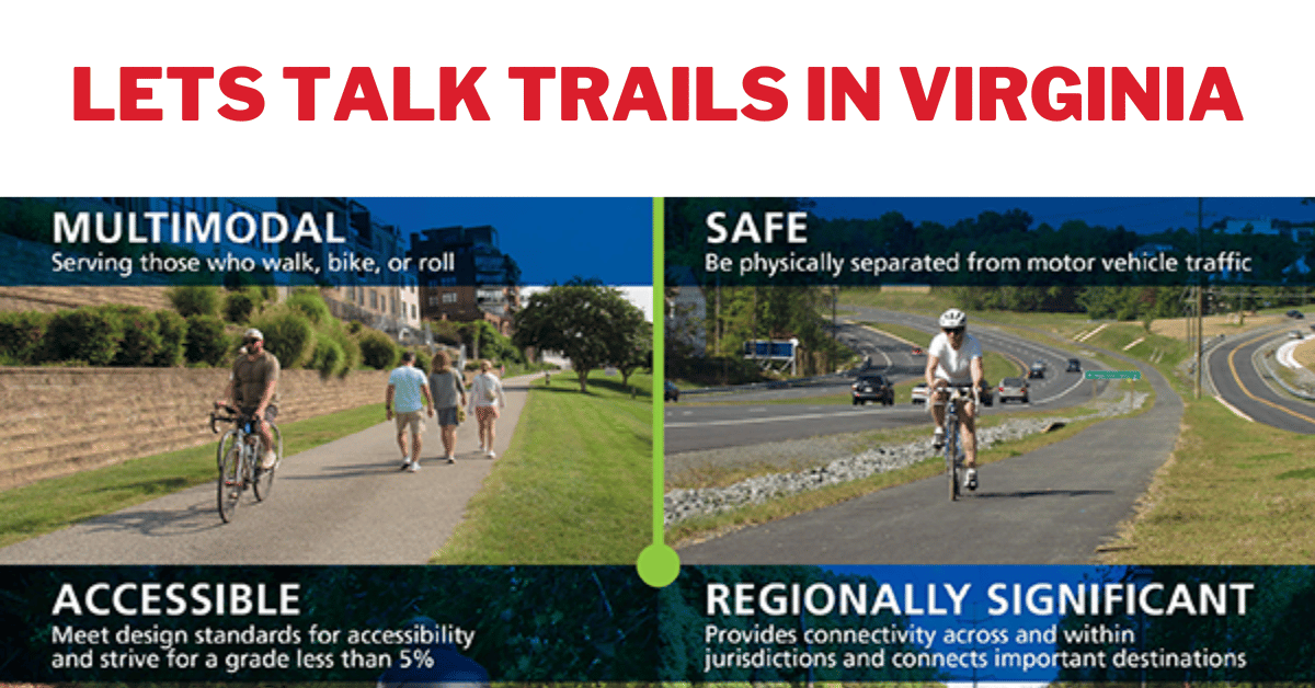Virginia should fund a mix of long-distance trails connecting multiple municipalities and shorter-distance trails within communities that connect neighborhoods to schools, employment, shopping, and more. The Trails Office should develop trail construction standards that ensure any new trails built can support long-wheelbase bikes like cargo bikes and bikes pulling trailers. This will ensure that trails work for families, not just for single people.